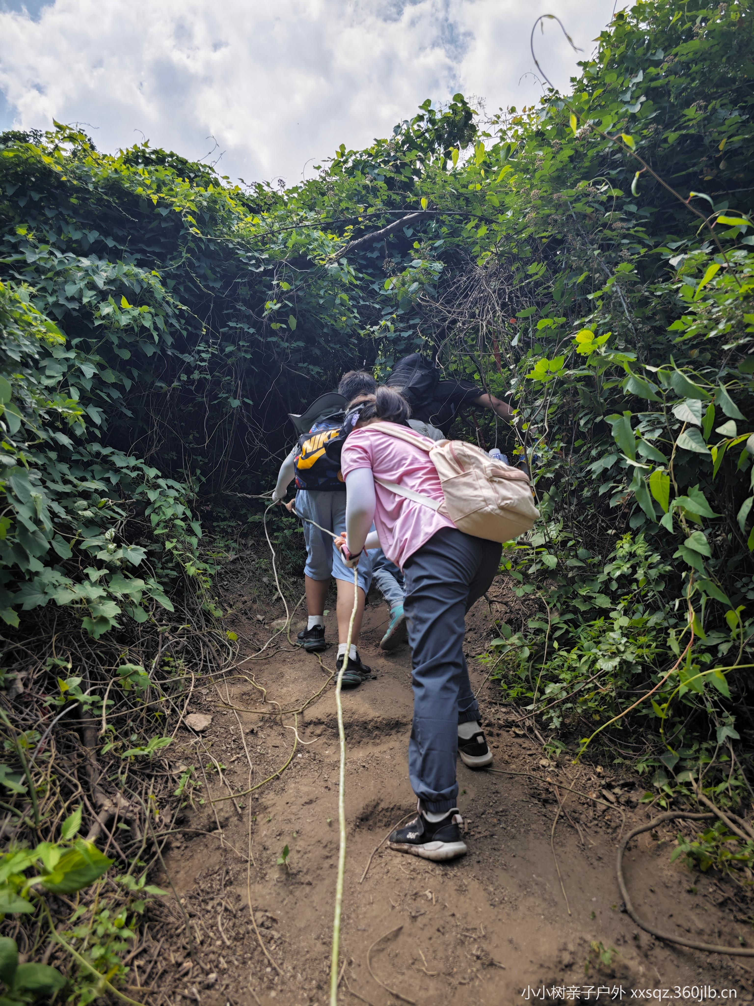 由月亮沟转入竹祥沟的坡,垂直近70度,两边藤蔓交错,孩子们攀援而上,看似危险重重,其实也是乐趣多多。休息之时,在藤蔓上荡个秋千也是孩子们最爱的娱乐。