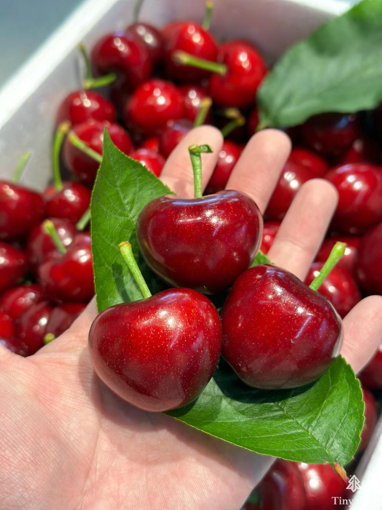 铜川大樱桃,中国优质甜樱桃之都,国家地理标识,中国十大好吃樱桃,其果实相较于普通樱桃更大更肥美、色泽艳、口感好,果园自然成熟,没有科技与狠活的大樱桃咬一口甜上心头,好吃到停不下来。