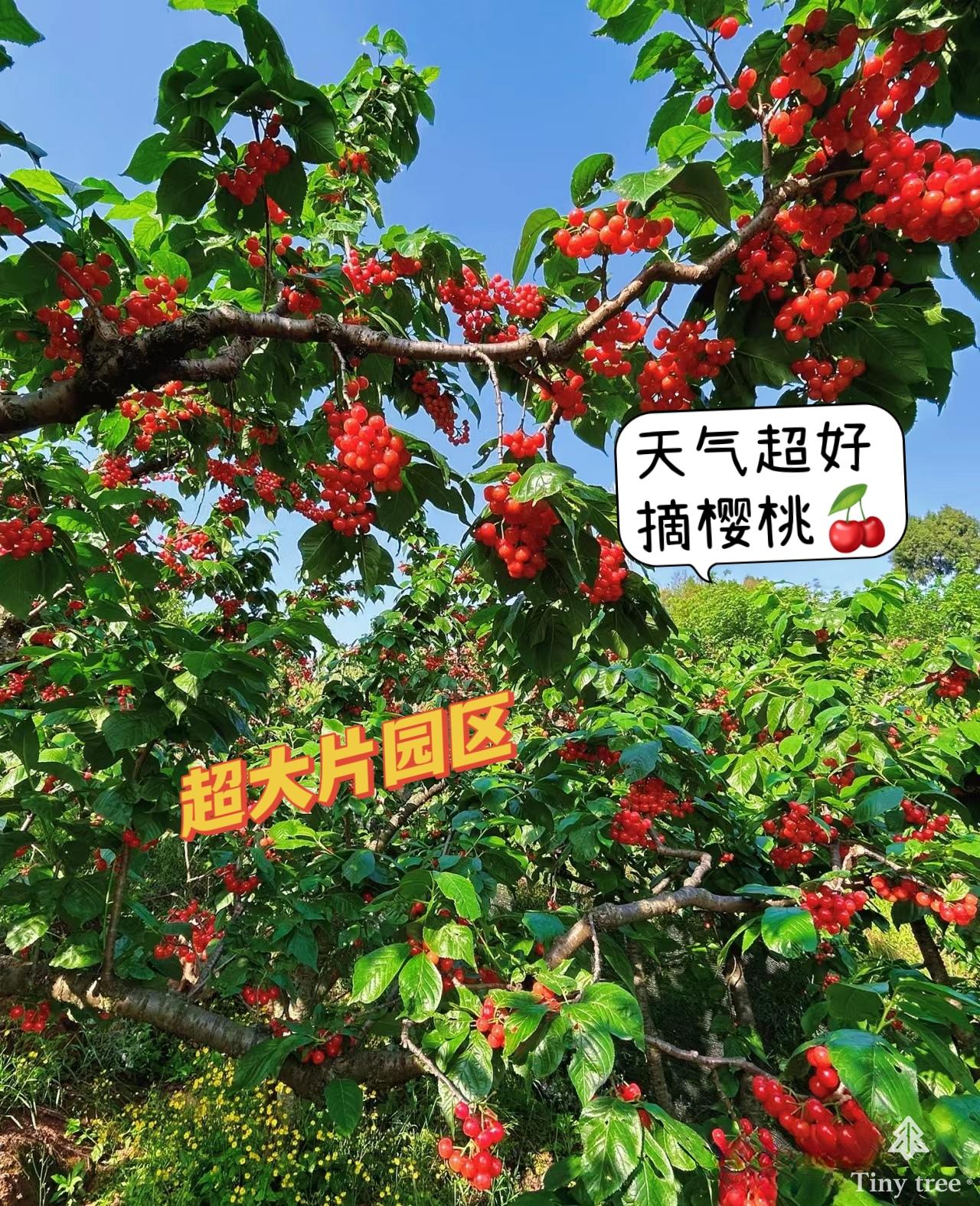 园区种有美早、拉宾斯、红灯、萨米脱、布鲁克斯、雷尼、早大果等,十来种品种口味的大樱桃。