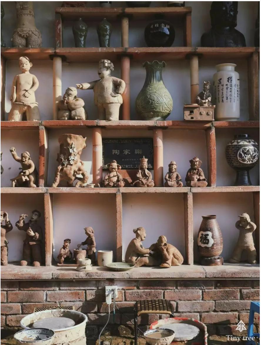 古耀州窑的传承和延续,被誉为“东方古陶瓷生产的活化石”,墙壁是瓷的,台阶是瓷的,水沟是瓷的,连地面也是瓷片儿竖着一页一页铺成的,就这样层层叠起来,罐罐垒墙,瓷片铺路,这里是现实版的世外“陶”源,一座露天的陶瓷博物馆。