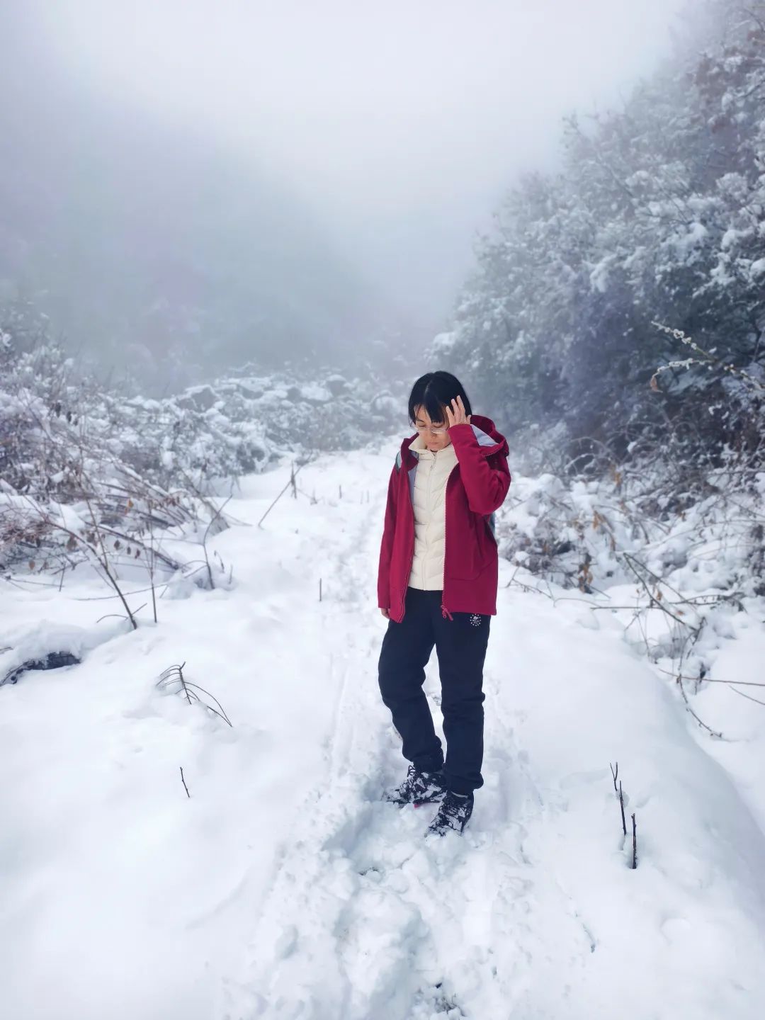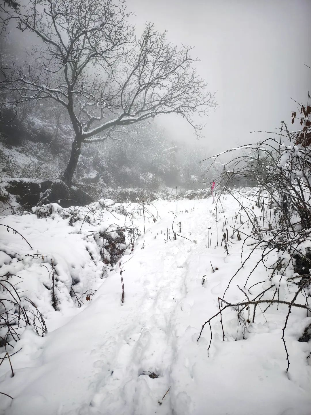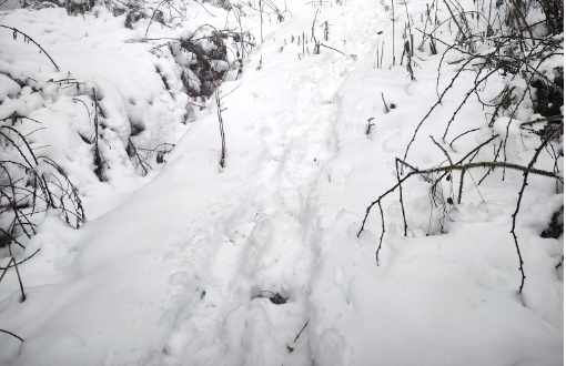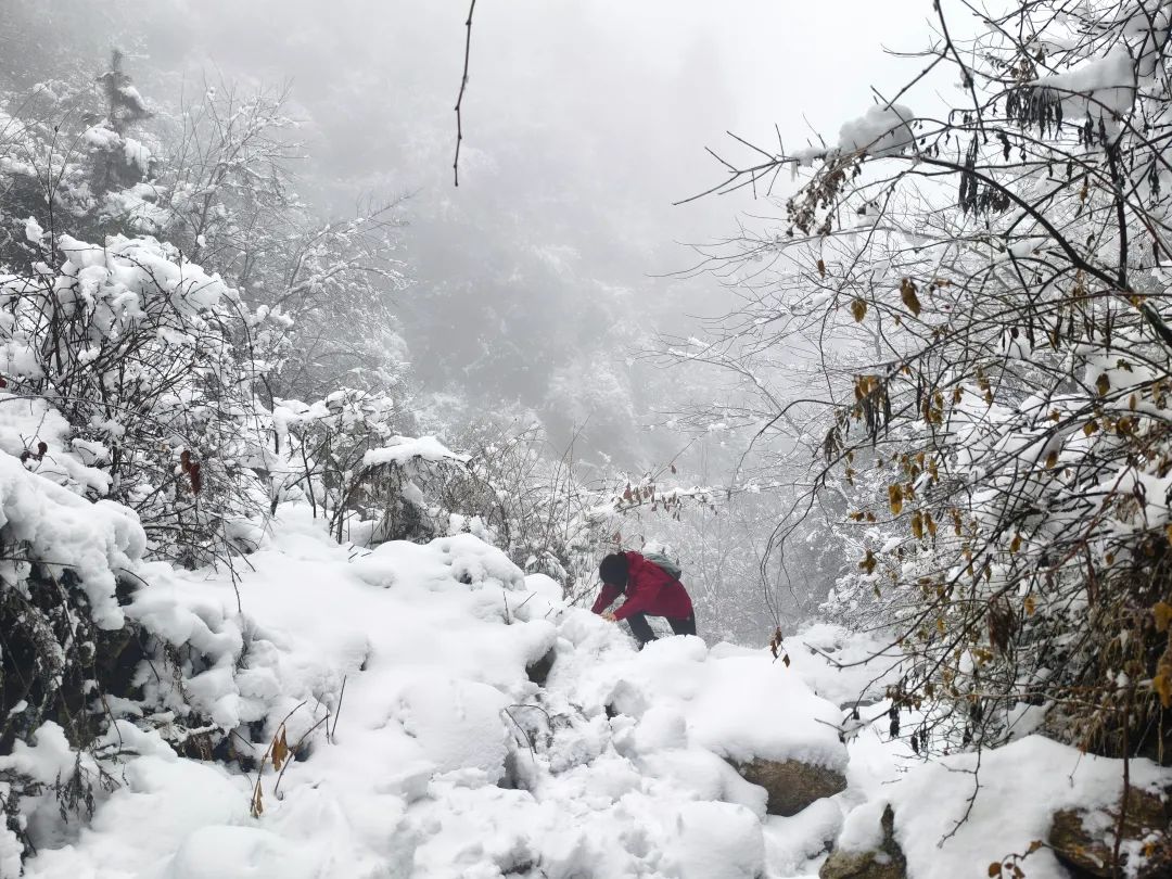 山野小径,积雪路面,全程往返预计4公里。