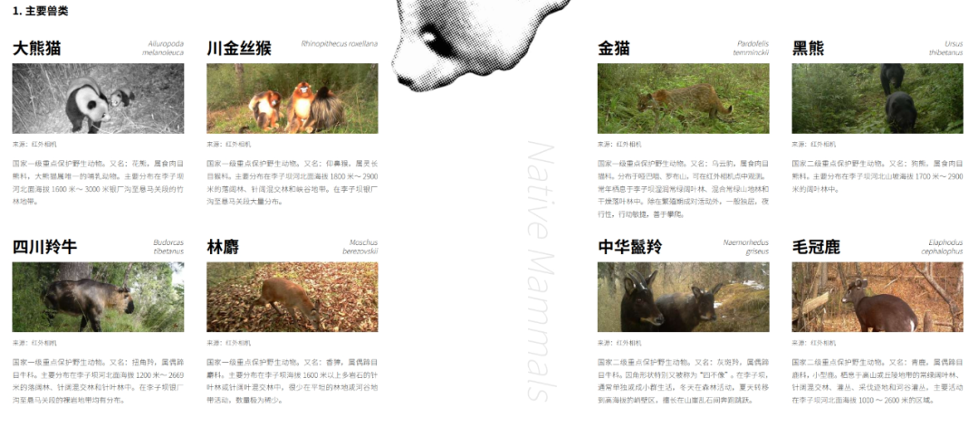 李子坝村从1978 年起就全部划入甘肃白水江国家级自然保护区内,李子坝区域是白水江保护区大熊猫关键栖息地,大熊猫与四川羚牛、川金丝猴、亚洲金猫等国家保护动物在此区域共生,有李子坝特有的文县瑶螈,还有与野生动物共生的珙桐、红豆杉等野生植物。