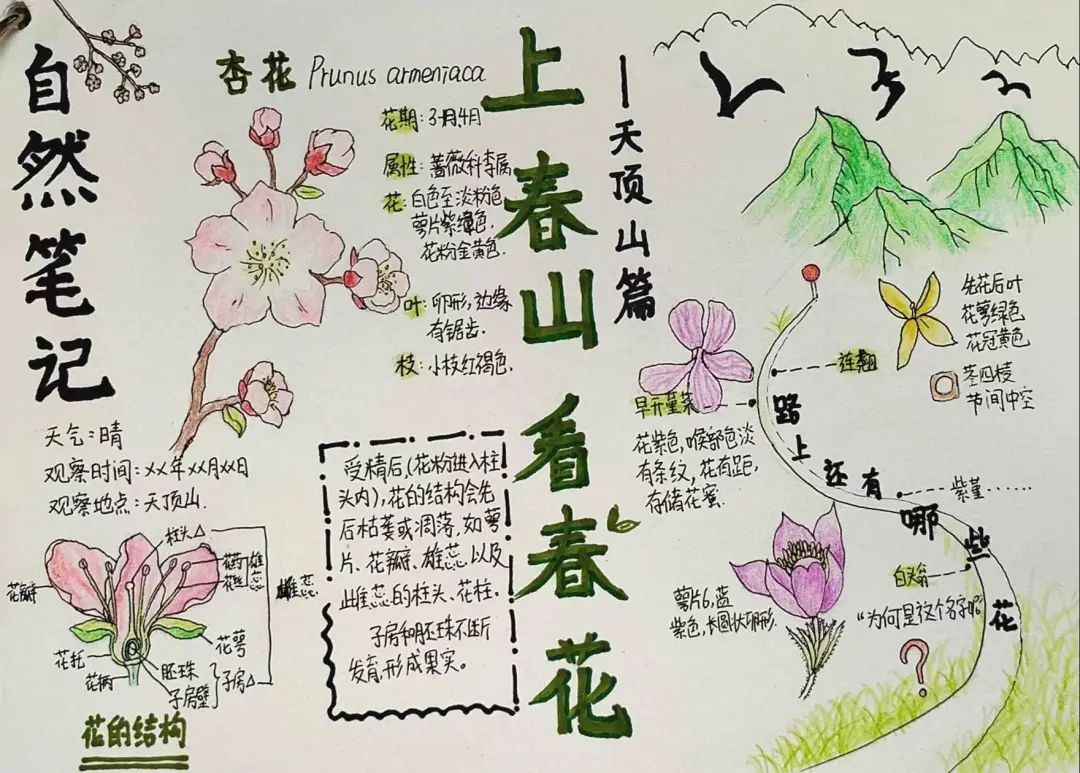 饺子老师手绘【杏花】自然笔记作为示例
