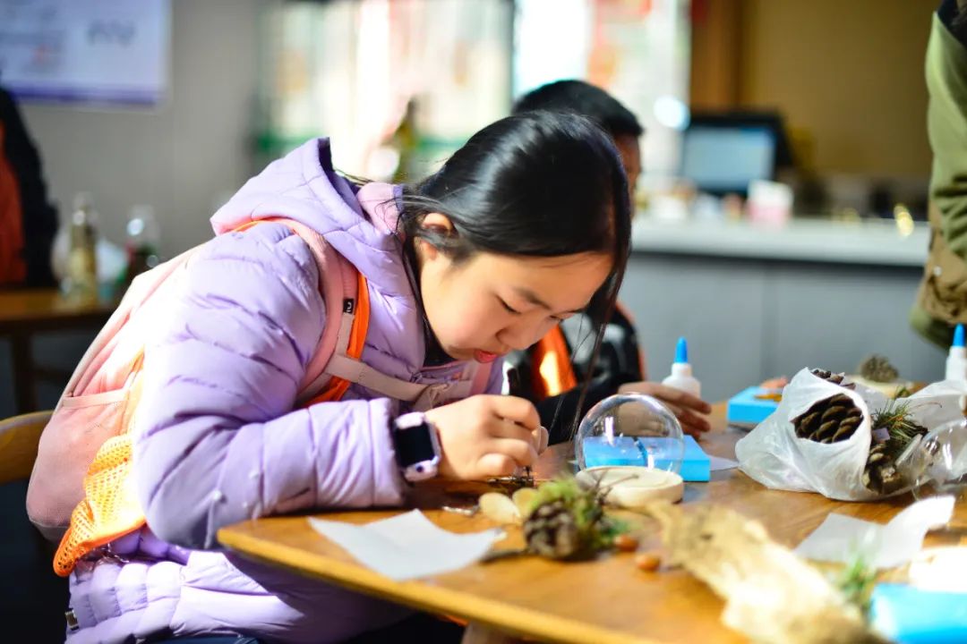孩子们也会为自己的蝴蝶生态瓶收集植物、树枝等,下山后统一装扮,打造独属自己的、最靓的生态瓶。