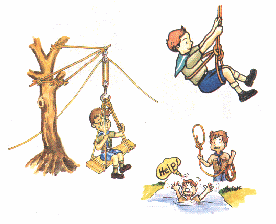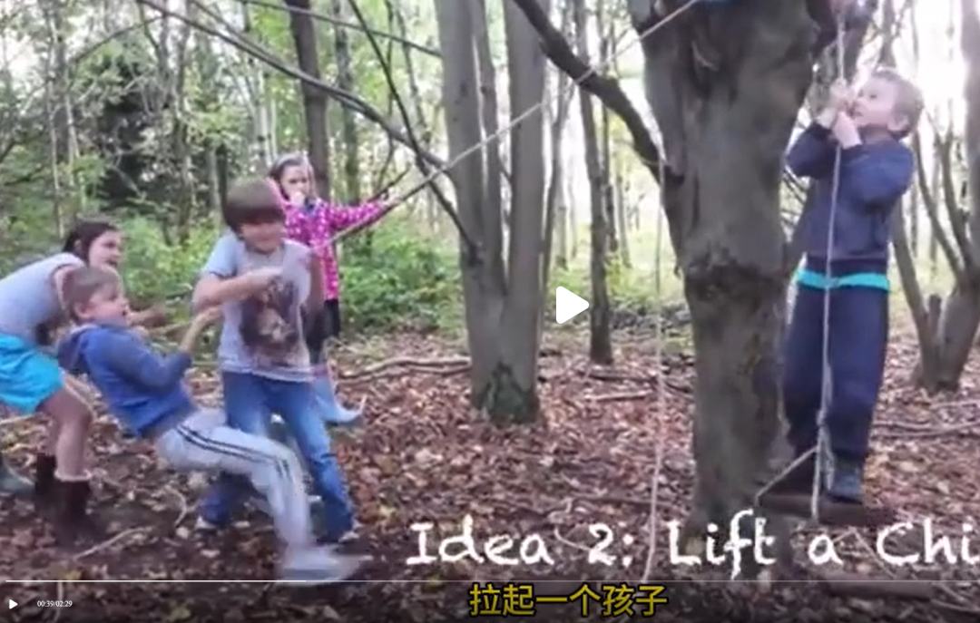 2、利用绳结制作一个户外游戏装置 “拉起一个孩子”