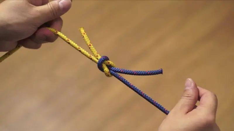 在生活中呢,我们通常把它作为绳子对接来用,因为平结能够很好的达到力度的均衡,所以当绳子受力好以后,是越拉越紧的。