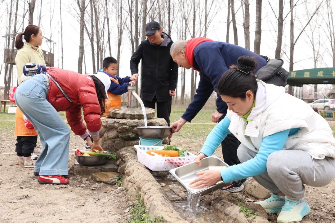 在田野里,检柴,生火,洗菜、切菜,压水、打水,我们一起劳作,制作我们自己的一锅大盘鸡!这不仅让孩子们开心,更让城市里的大人们感受到了许多的快乐!