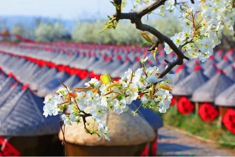 //梨枝绽雪映春阳 馥郁酱香韵绕梁//