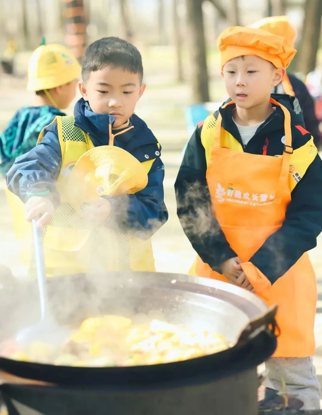 本活动午餐为亲子协作完成的荒野铁锅炖,营地提供一次性餐具;营地有热水,需自备水杯。