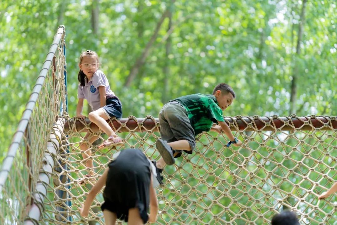 野趣的杨树林里,有夏日的绿树荫浓,也藏着孩子们喜欢各种无动力设施。孩子们在这里奔跑,各种探索,大人就收获了片刻的休闲。