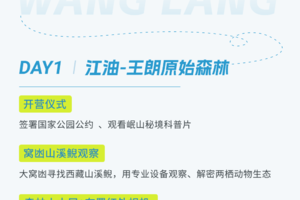 下午:抵达王朗国家自然保护区,举行开营仪式,签署国家公园公约、观看岷山秘境科普片 。
