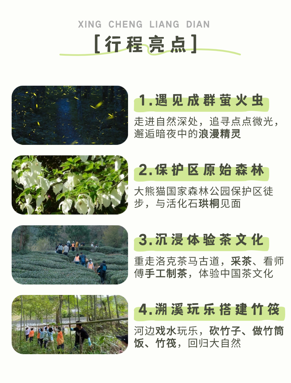 这个暑假 大人和孩子一起躲进隐世茶乡 徒步茶马古道 遇见活化石珙桐 河里戏水、做竹筏 入夜进入上百只萤火虫聚集的魔法自然园 看暗夜精灵翩翩起舞 在梯田茶园里用指尖轻轻采摘茶叶 看师傅如何手工炒制 捧起泡好的新茶 品味人间清香 …… |