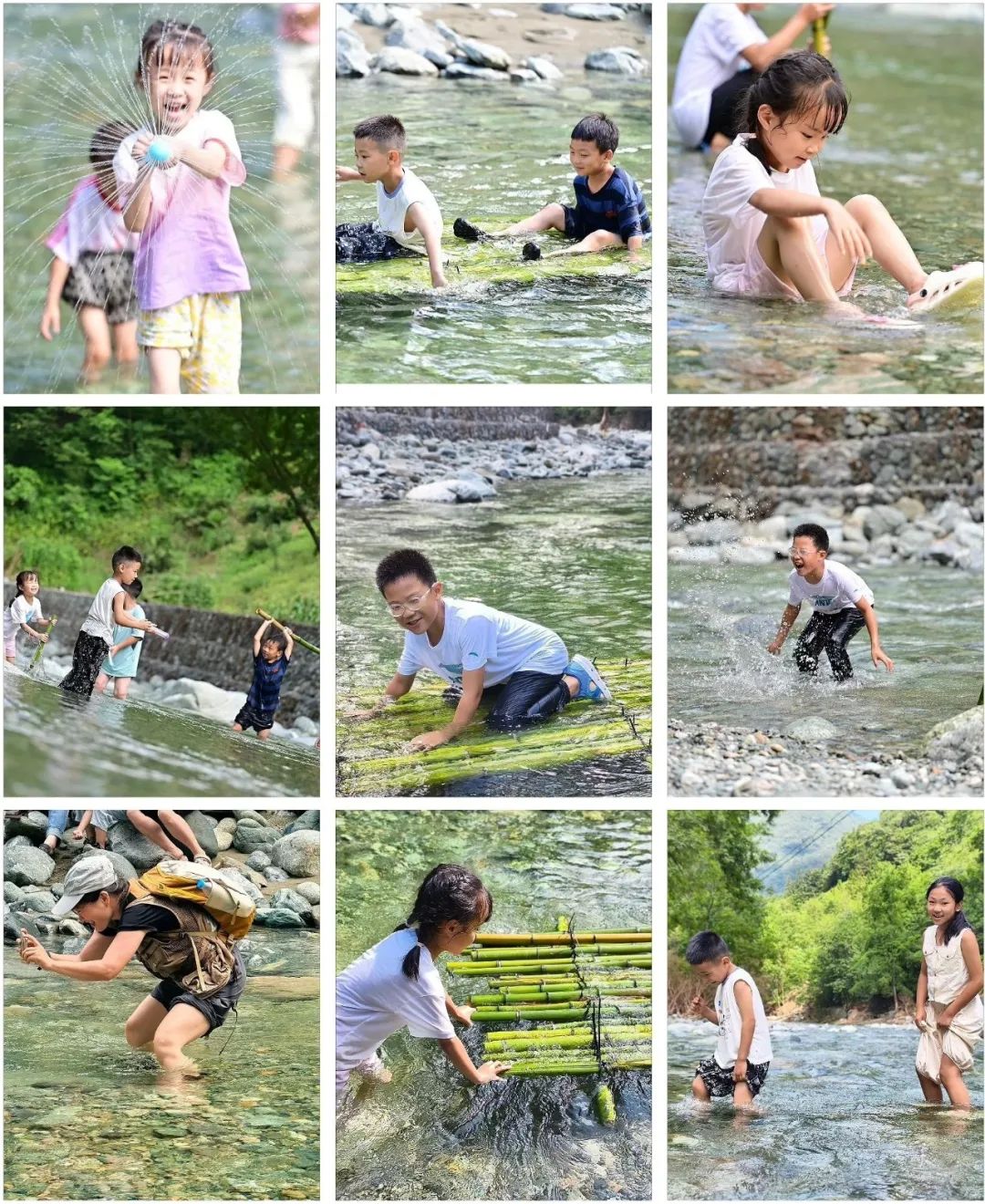 下午我们在河边自由玩水,砍竹子、做竹筒饭、团队协同制作竹筏,释放天性,在乡下做一个快乐的孩子。